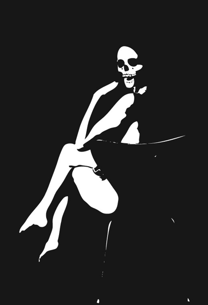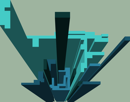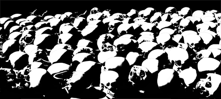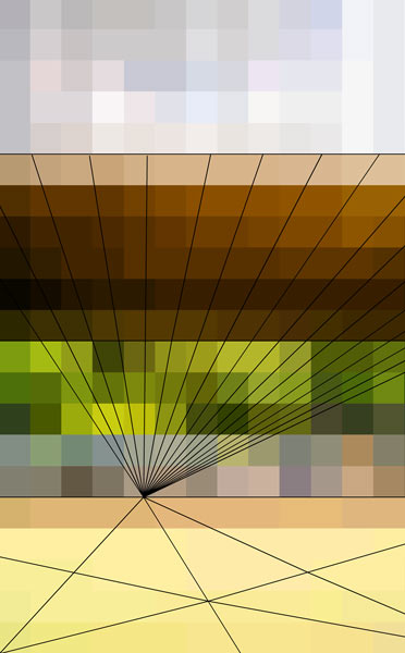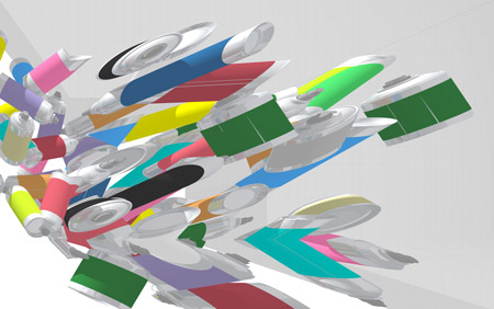 Anamorphic print of spray cans.